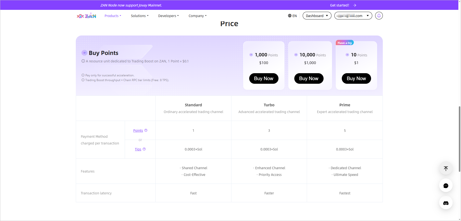 Currently, only transactions on Solana dedicated nodes can be boosted with unmatched speed, performance, and efficiency by purchasing and utilizing dedicated transaction acceleration resources (Points).