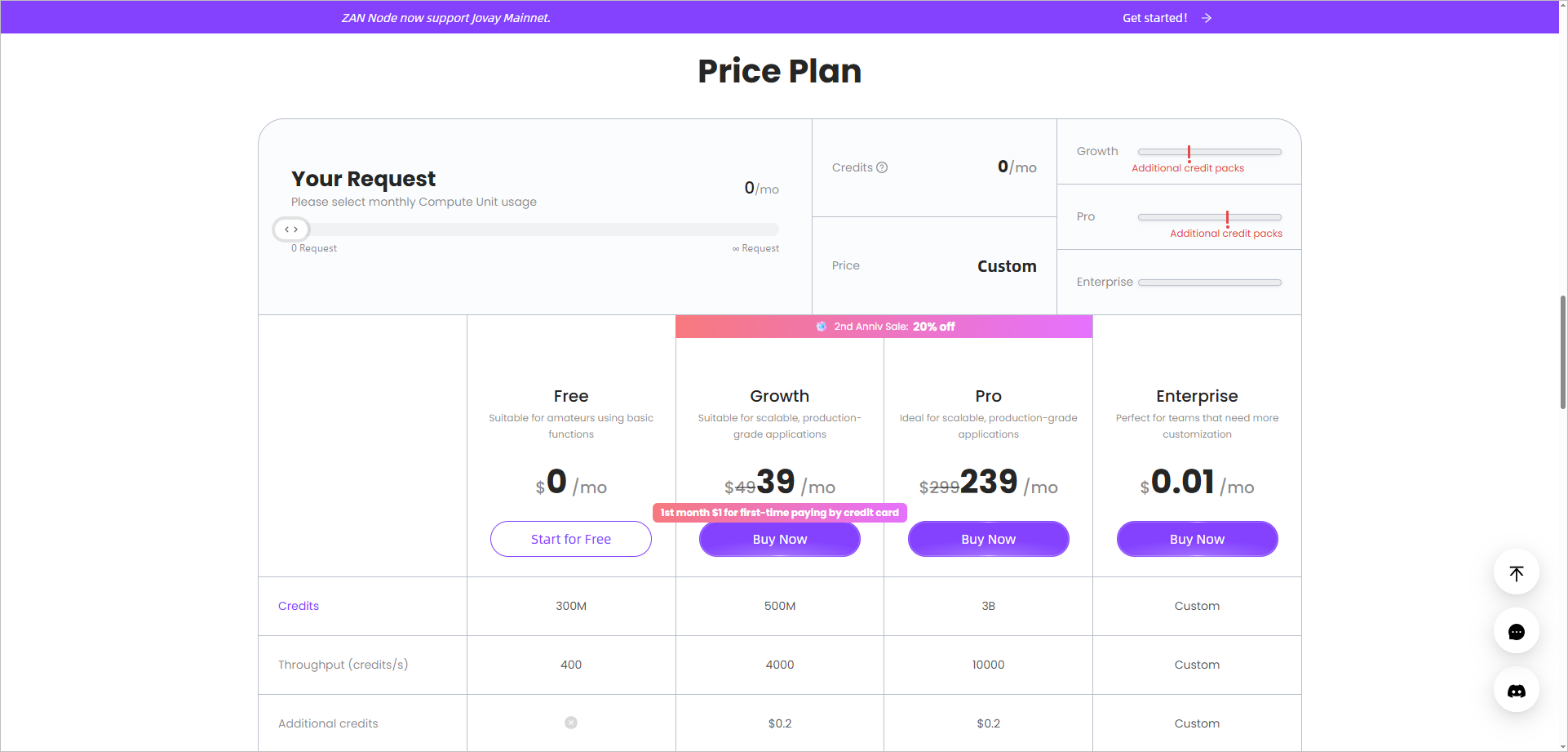 We have four different plans tailored to meet the needs of various user groups. Whether you're a web3 beginner, independent developer, part of a team, or a large enterprise, we have got you covered. Our Growth and Pro plans are available for online purchases, while our Enterprise plan offers complete customization options and can save you 30%-40% on costs. If you need more information, please don't hesitate to contact us.